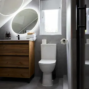 A walk-in shower and a separate toilet are provided in the bathroom.